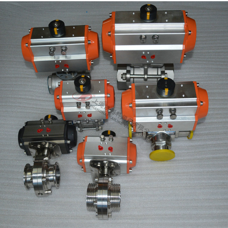 采用新型GT系列或AT系列气动执行器,有双作用式和单作用式(弹簧复位),齿轮传动,安全可靠;大口径阀门采用AW型系列气动执行器拔叉式传动,结构合理,输出扭矩大,有双作用式和单作用式。